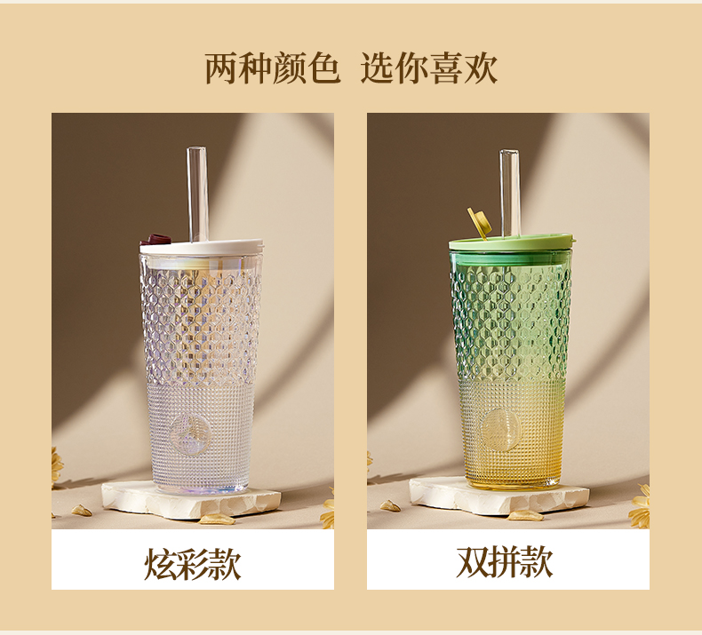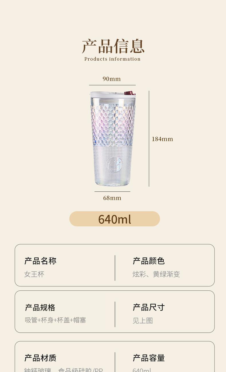 產(chǎn)品賣點(diǎn):「行走的鉆石藝術(shù)」--INS風(fēng)鉆石切割紋路設(shè)計,攻克傳統(tǒng)水杯設(shè)計同質(zhì)化痛點(diǎn),打造穿搭級杯具社交貨幣屬性,杯身光線流轉(zhuǎn)色彩變化,實(shí)現(xiàn)「1杯7色」奇幻效果黃金容量攻防戰(zhàn):640ML「奶茶VS溫水」雙場景通殺,單手可握設(shè)計破解大容量水杯笨重困局